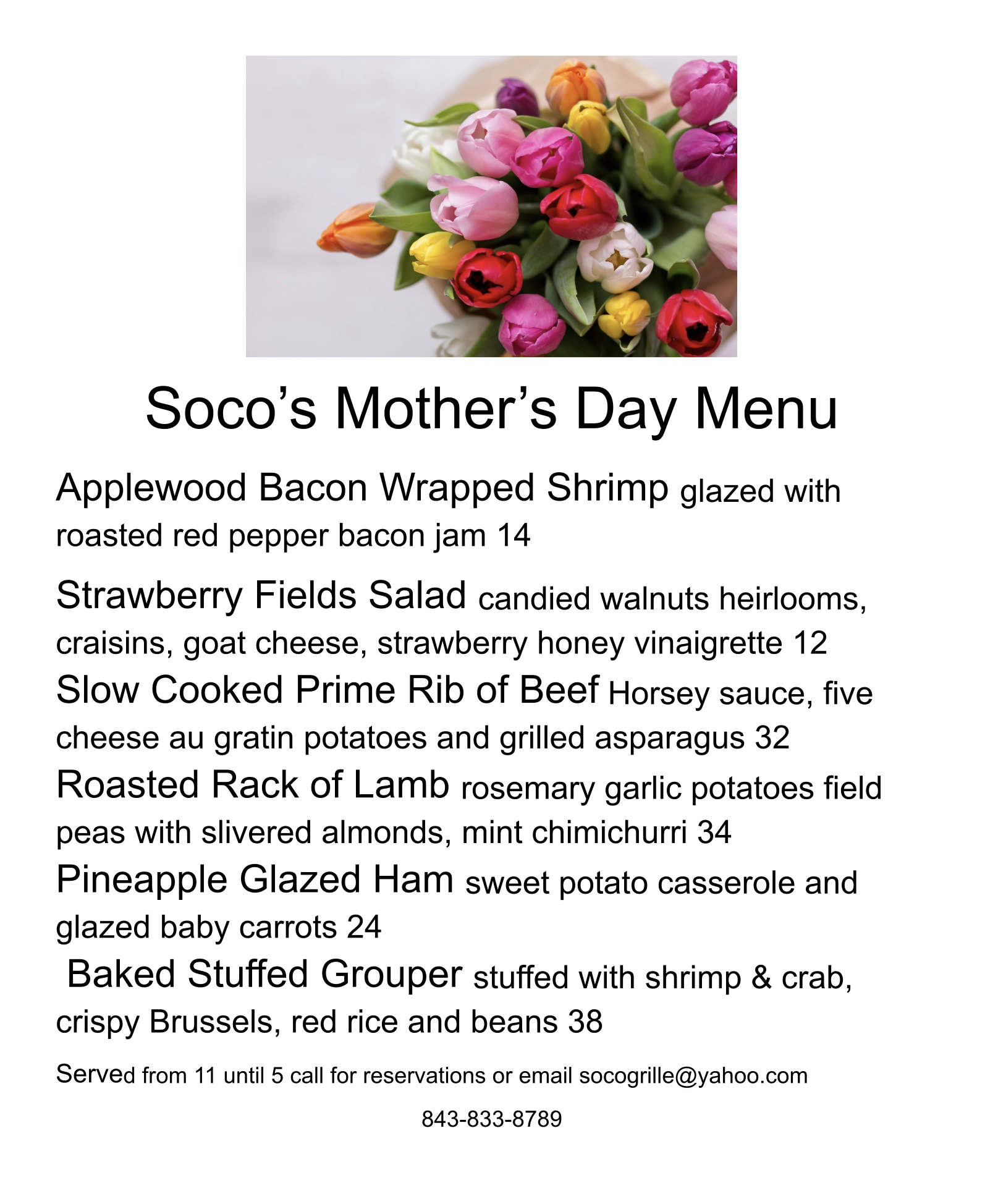 Mother’s Day Specials at SoCo Grille