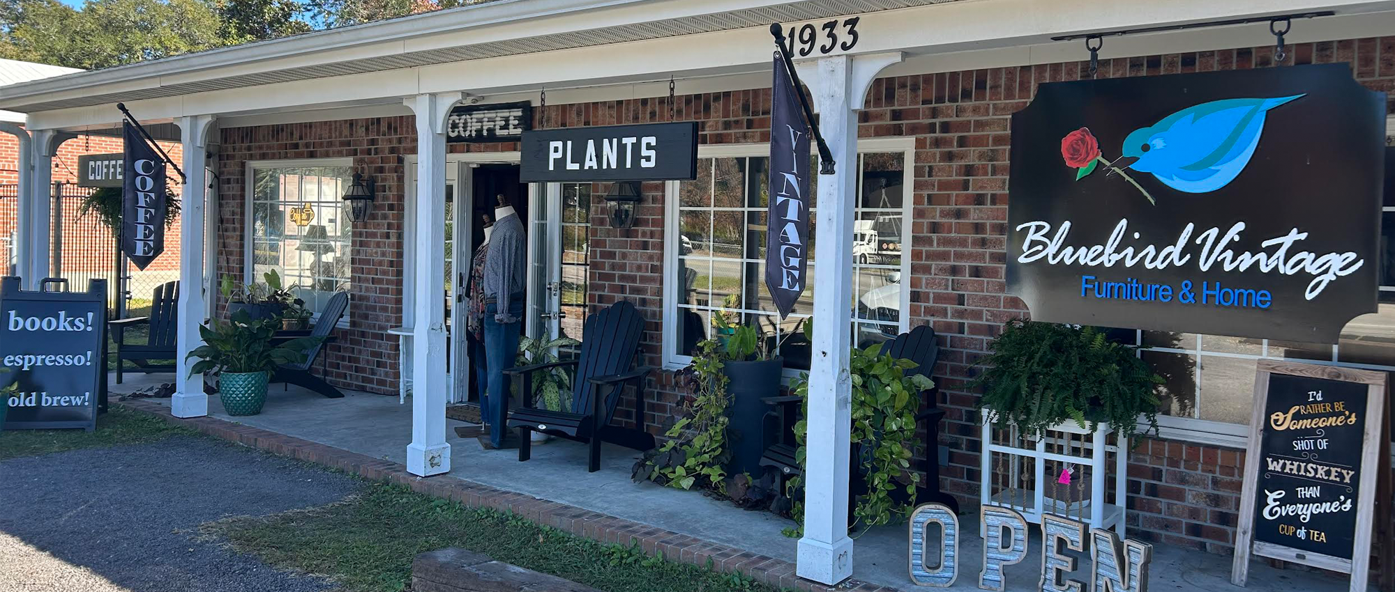 Step into Bluebird Vintage Coffee House and Vintage Market, where your shopping experience begins with a delicious beverage! Discover a unique blend of high-style consigned furniture, curated art, antiques, rugs, lighting, and swanky accessories. Explore the vintage finds and then wander to the back of the store to Wildflower & Whiskey, a boutique offering upscale retail and resale women’s and men’s clothing, shoes and accessories. Want to consign with us? Call for information about our free pickup day for furniture consignment (843-936-3697); or contact [email protected] to make an appointment for clothing consignment.
